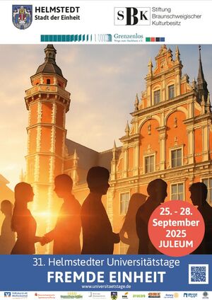Die Helmstedter Universitätstage 2025 finden von Donnerstag, 25. September, bis Sonntag, 28. September statt. Das Thema der 31. Helmstedter Universitätstage lautet "Fremde Einheit". Die Universitätstage finden wie immer in der Aula des Juleums, dem Auditorium Maximum der traditionsreichen ehemaligen Academia Julia statt.